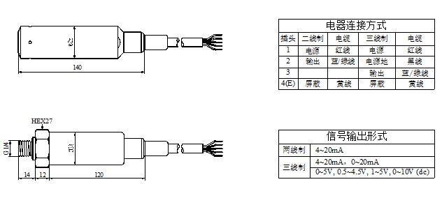 二线制环流输出引线无极性;三线制电压输出型为交直流两用。