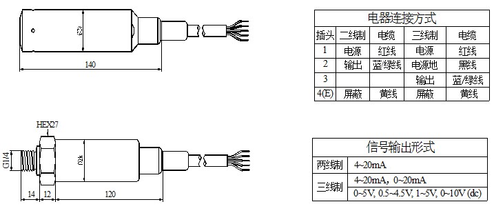 | 压力接口 | 投入式,螺纹式:M20×1.5、G1/4、G1/2、R1/2、NPT1/2 | ||||